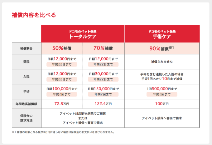 ドコモのペット保険に関する詳細はこちらから
