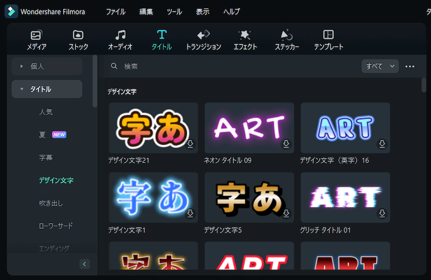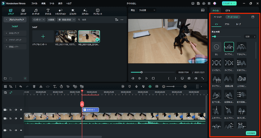 [タイトル]をクリックすると、いい感じのスタイルから選んで動画内のタイトルとして挿入することができます。